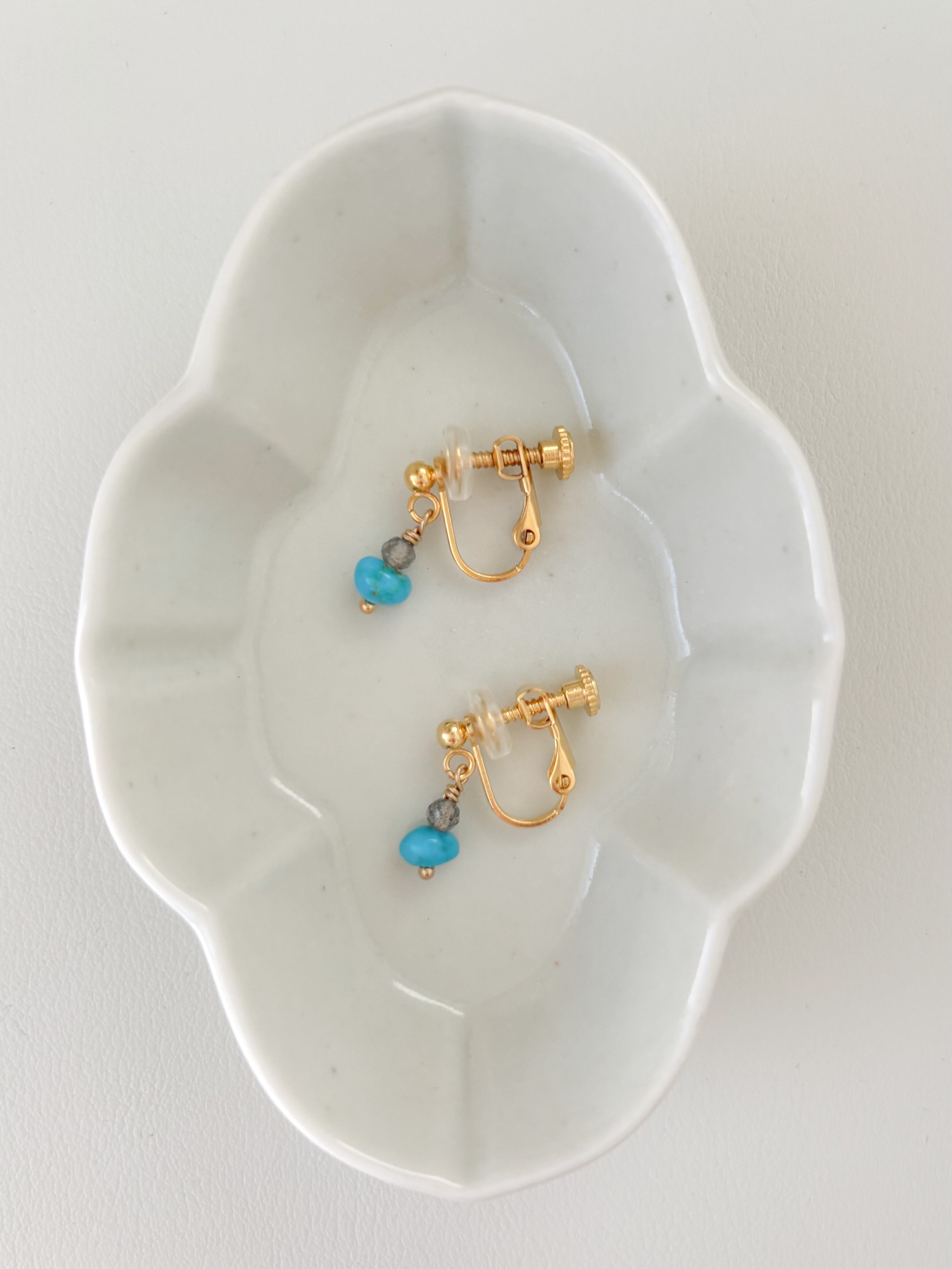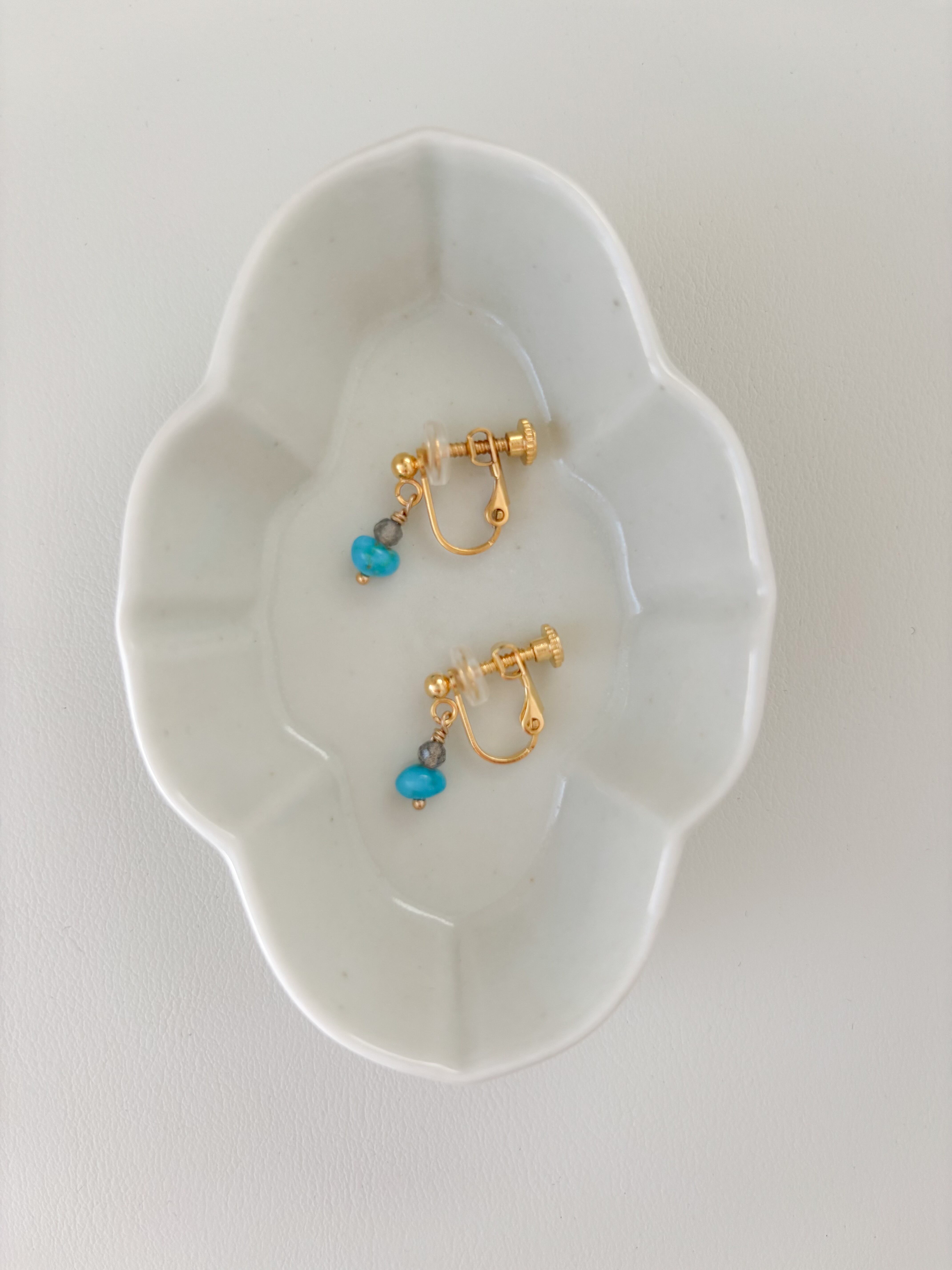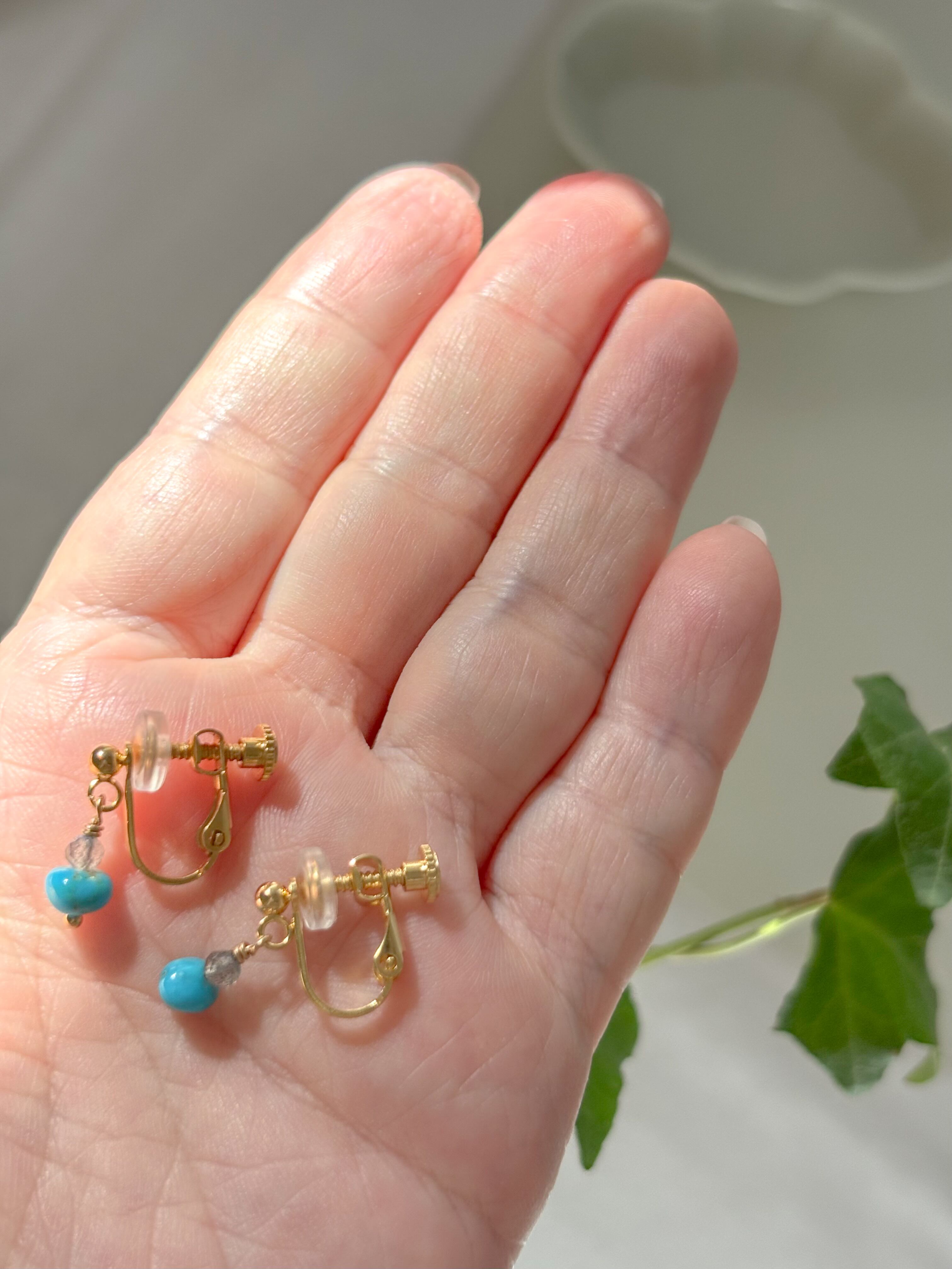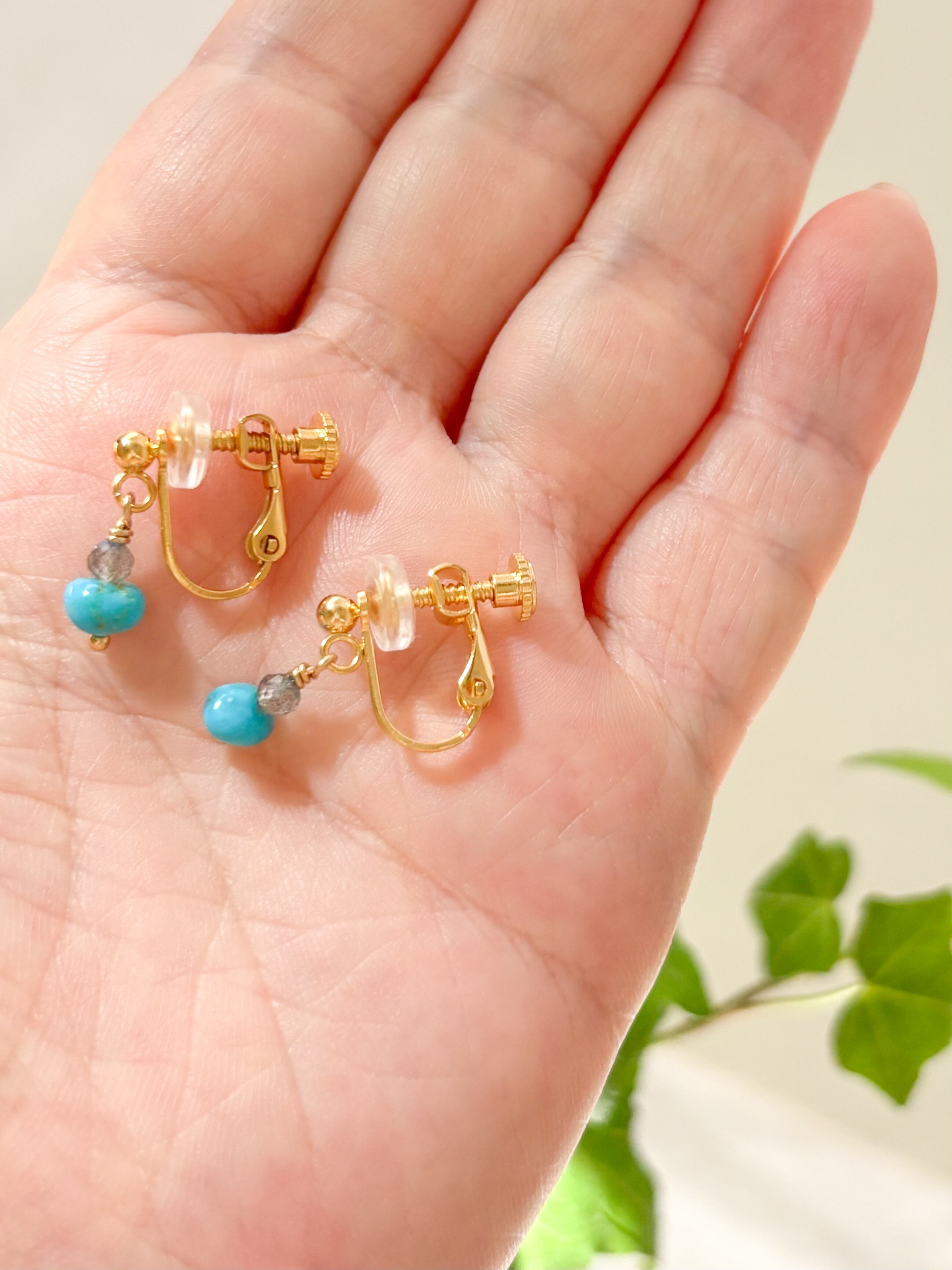 希少なターコイズと、ラブラドライトを重ねたイヤリングです。