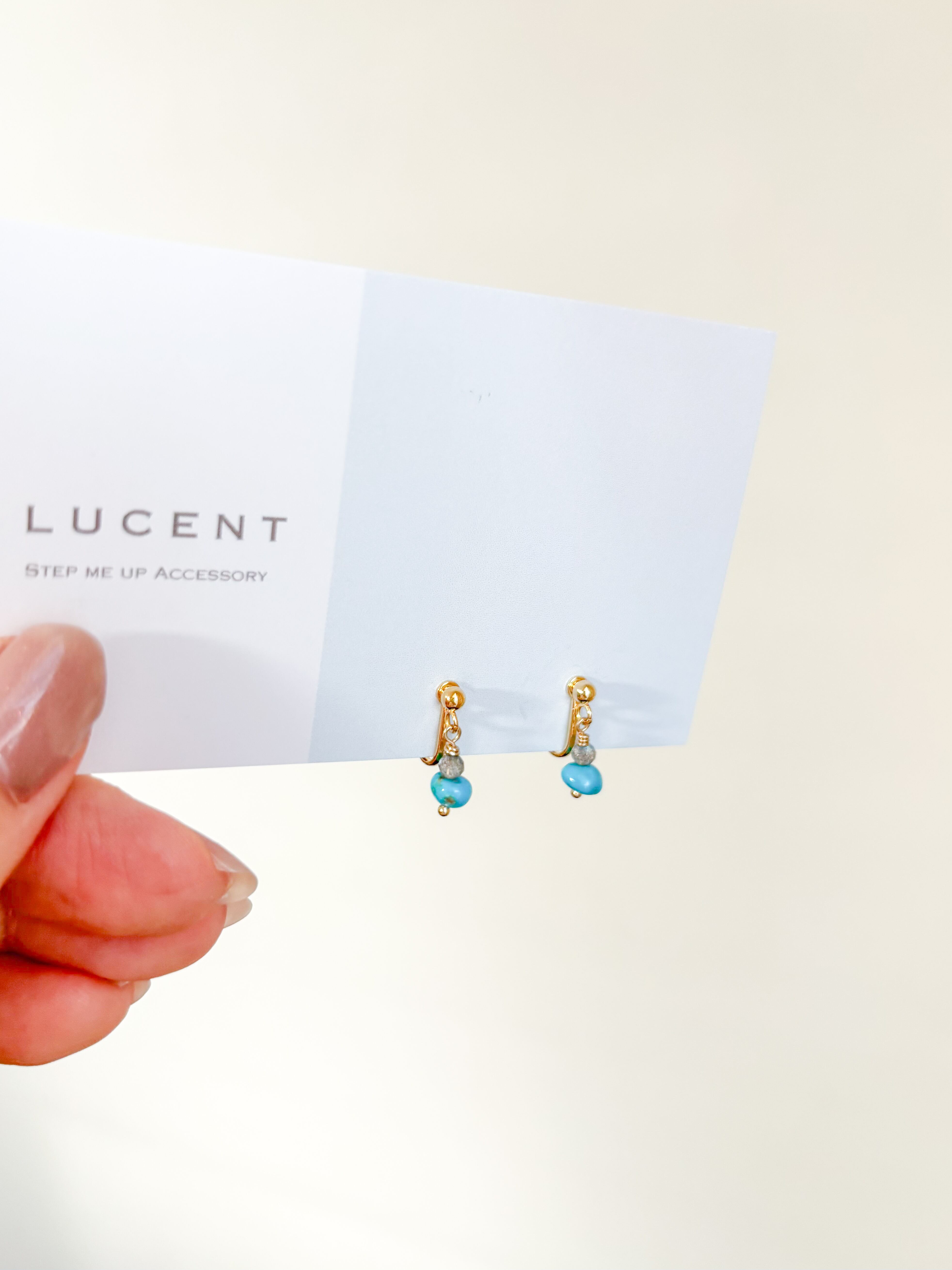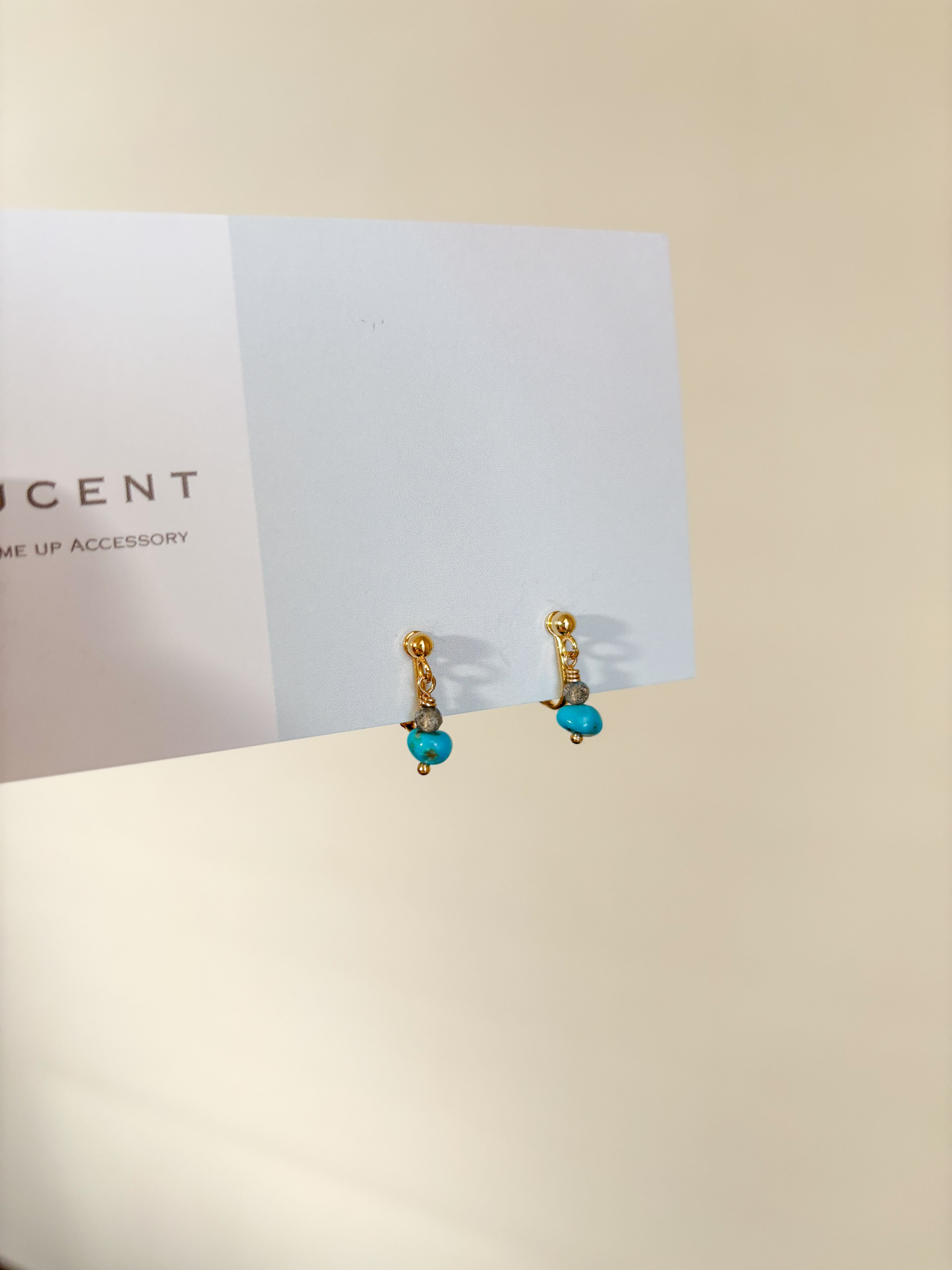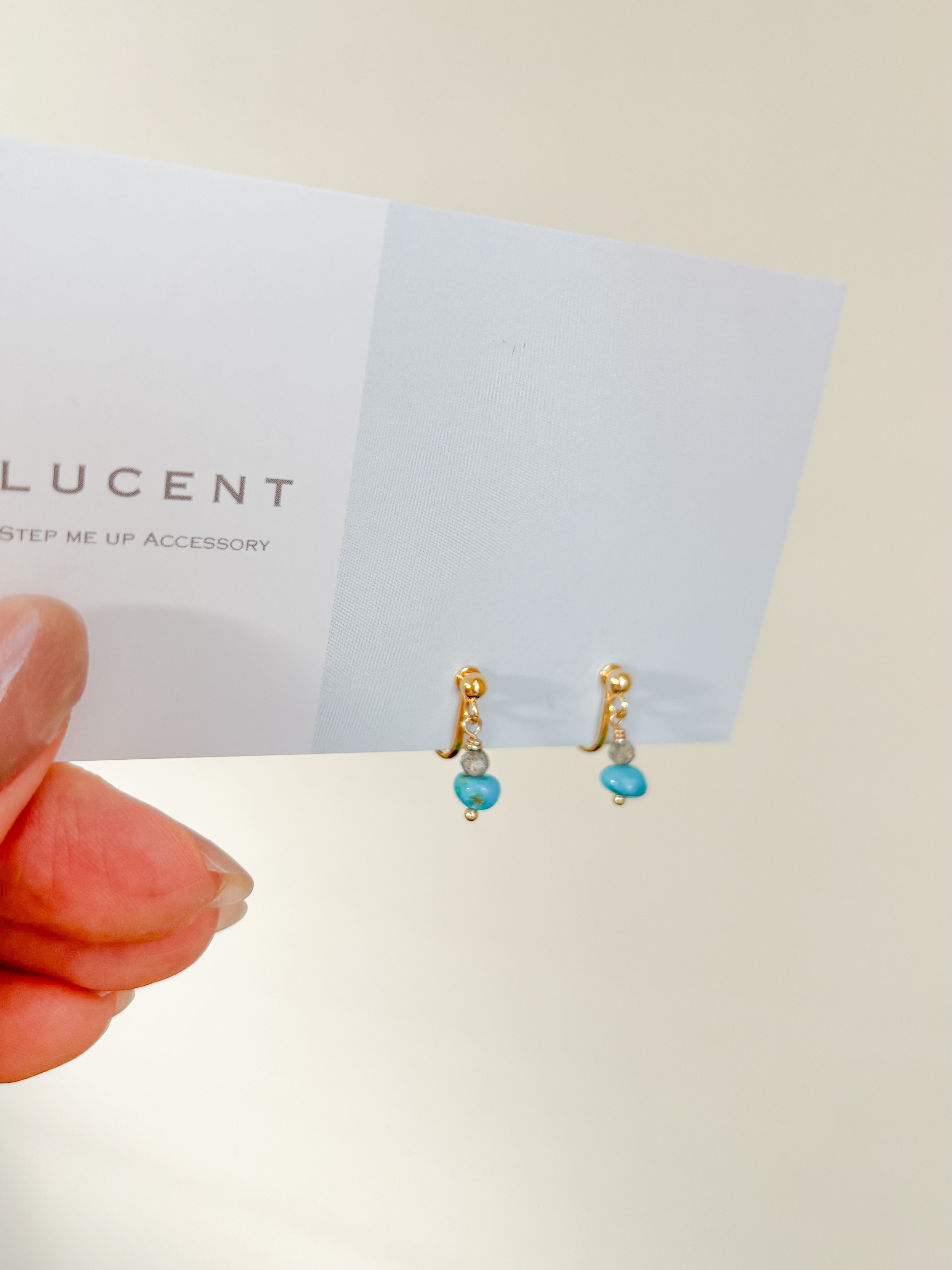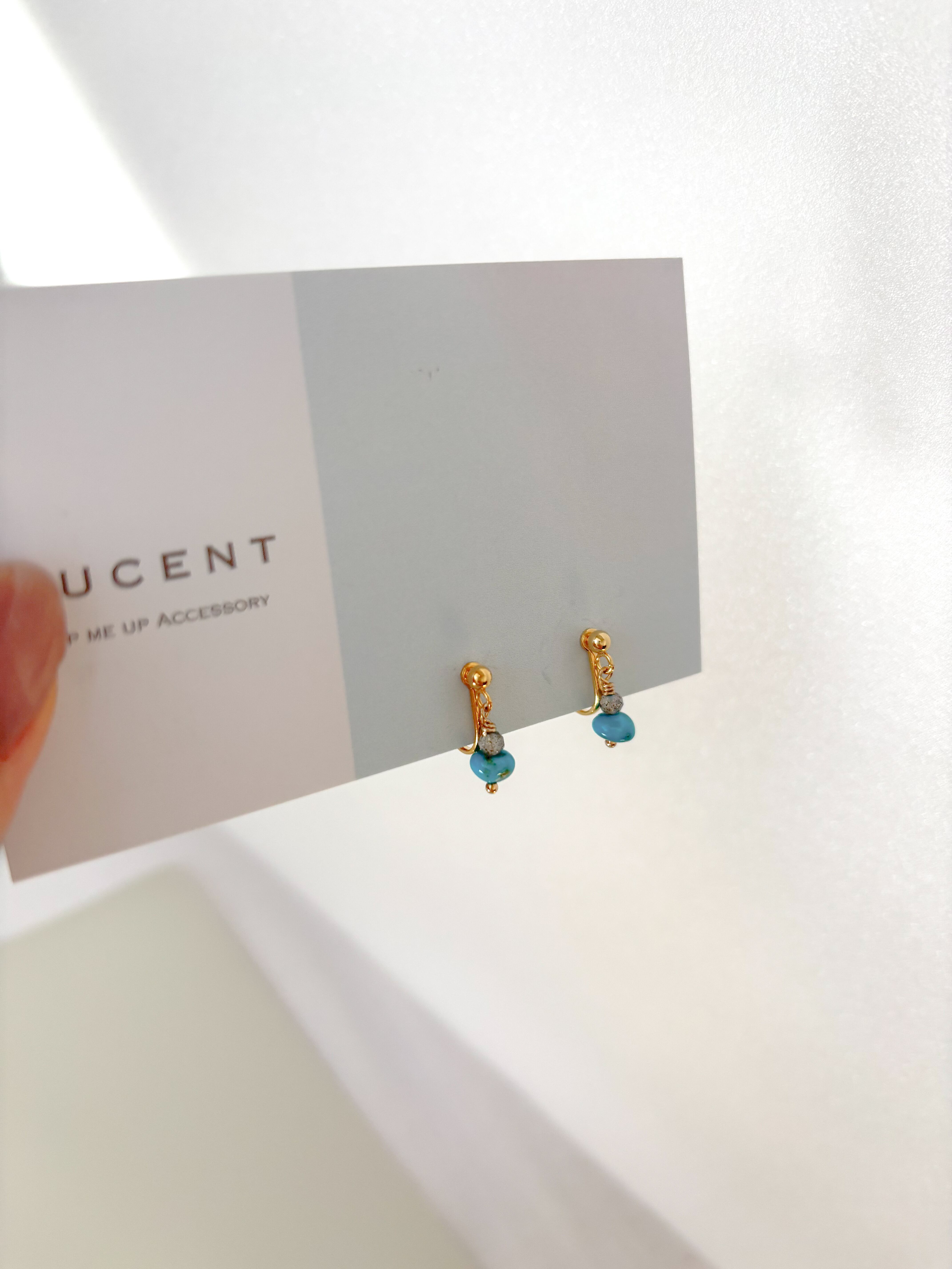 希少なターコイズと、ラブラドライトを重ねたイヤリングです。