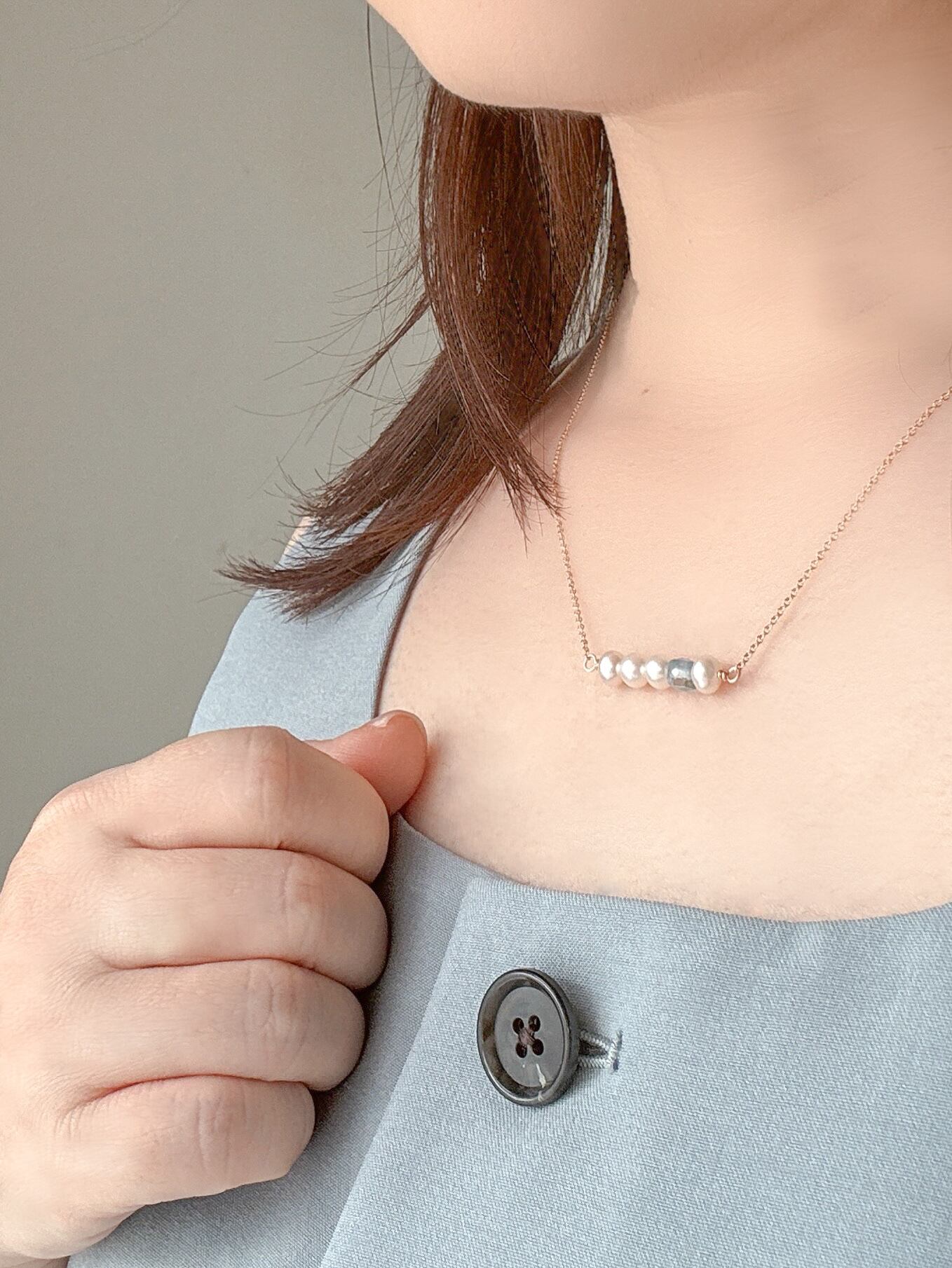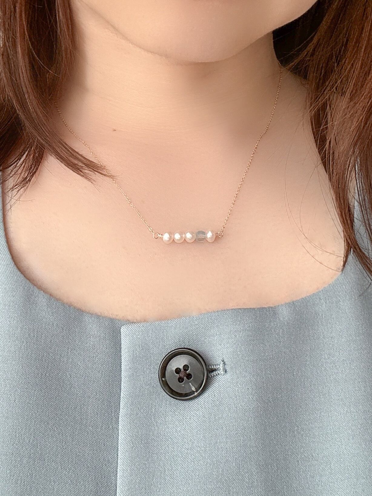 まろやかな淡水パールではさんだバーネックレス。